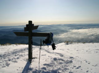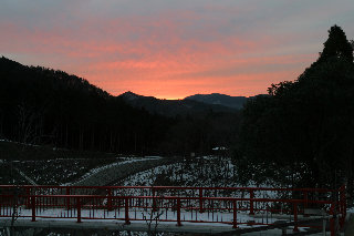2007年元旦 昨年に続いて初登山に那岐山を選んだ。 山の駅には奈義町主催の「初日の出祭り」に数百人が集まっていた。 |