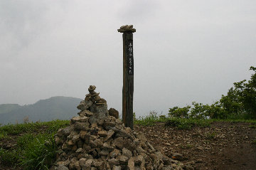 森林公園で最も眺望のすばらしい場所だ。 山頂は360度のパノラマで、晴れた日には大山や日本海が遠望できる。 残念ながら今日はガスに邪魔されてどちらも見ることができなかった。 |