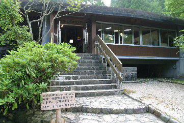 AM10:10 すでに駐車場には20台以上の車があった。 管理棟に立ち寄って案内図をいただき、本日のルートを「たたら遺跡−六本杉−根曲り杉−奥ぶなの平−すずのこ平−もみじ平−千軒平」に決めた。 |