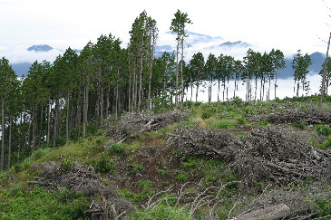 ダルガ峰で目につくたくさんの倒木。 これもやはり2004年の台風の爪痕か。 |