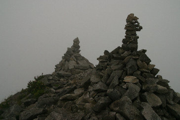 主稜線に出るが残念ながらガスで展望が利かない。 ここは左手に進路を取り、三鈷峰を目指す。 |